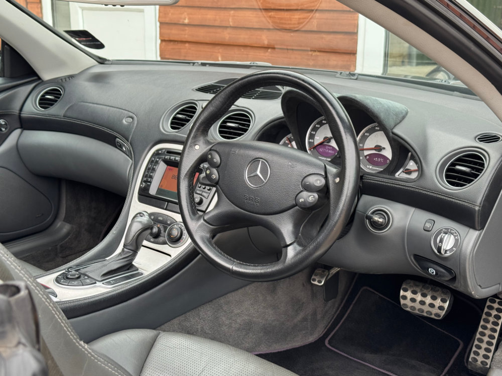 Powered by the legendary 5.4 litre V8 Kompressor engine, the car delivers effortless performance while still feeling refined and comfortable to drive. The engine and automatic gearbox are both smooth, and it drives exactly as an SL55 should. The folding hard-top roof works perfectly, making it just as enjoyable with the roof down as it is as a grand touring coupe.