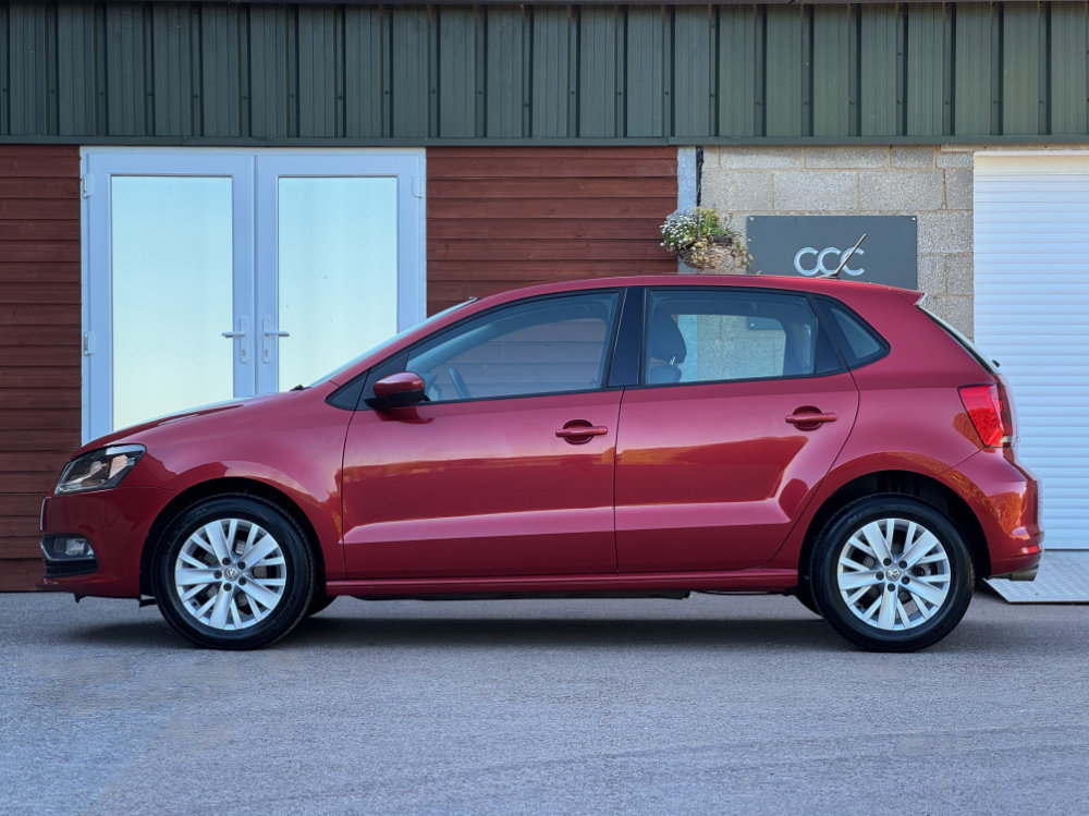 2014 Volkswagen Polo 1.2 TSI BlueMotion Tech SE finished in Deep Black Pearl Red Metallic with just 12,000 miles from new.